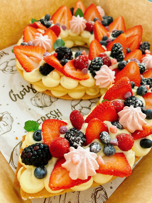 Pastel de Numeros/Letra con crema de mascarpone y frutos rojos